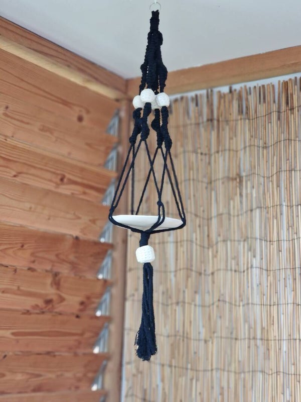 Deze zwarte plantenhanger met keramieken kralen is een must have in jouw huis!